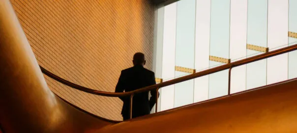 Schadensersatz bei Gründungschwindel - Unternehmer steht auf einer Treppe